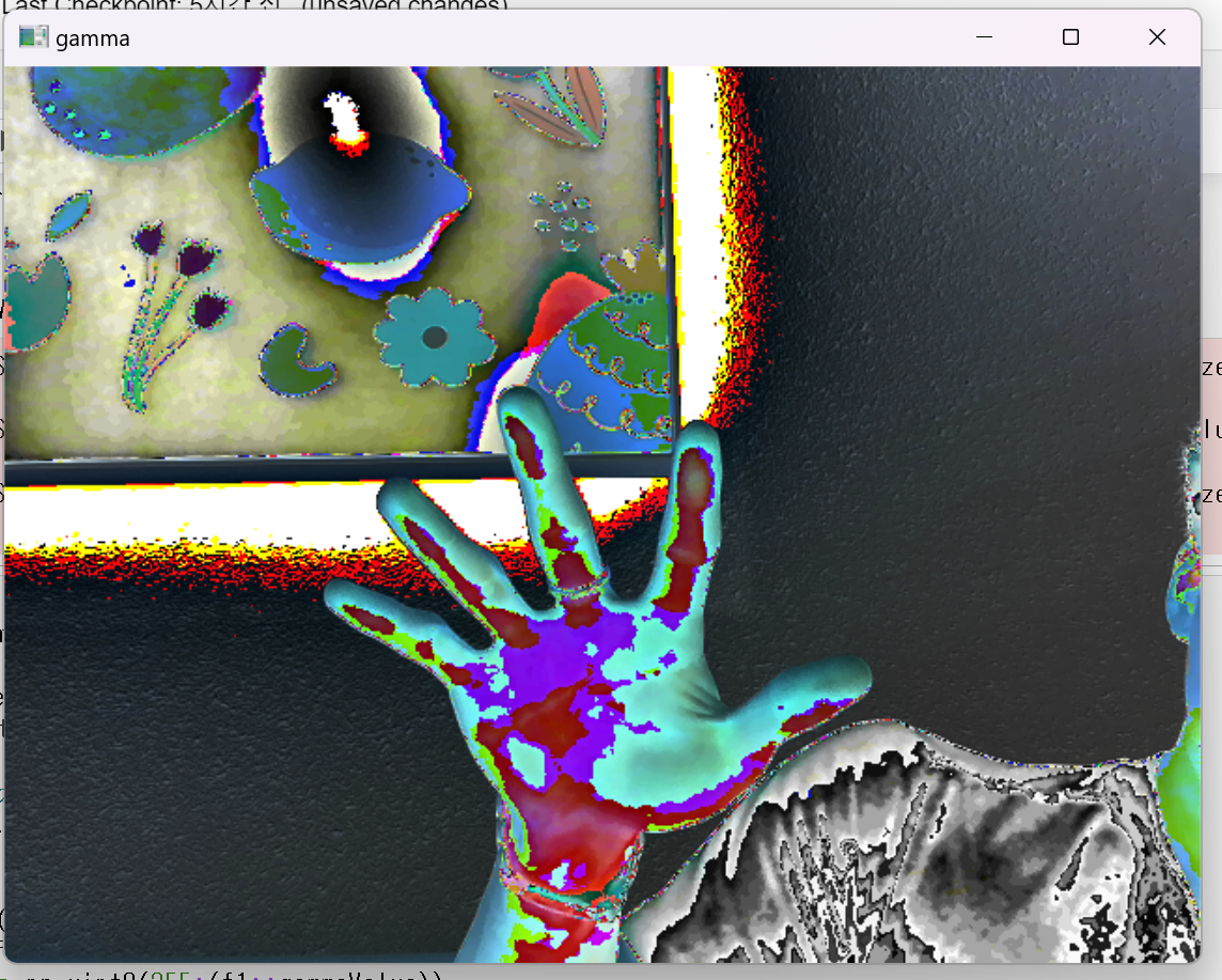 웹 캠에서 영상을 받아오고, 실시간으로 사용자가 'u' (up) , 'd' (down) 버튼으로 감마를 조절할 수 있는 코드를 작성하겠습니다. import cv2 as cv import numpy as np 나중에 gamma 조절 함수의 반환값으로 np.uint8 타입을 써야하므로 numpy를 임포트합니다 gammaValue = 1.0 # 감마 기본값 초기화 이번 개발중 가장 오류가 많이 생긴 이유이자. 가장 기본적인 초기화를 (while 밖에) 해 줍니다. 만일 while문 안에 초기화 시키면 매초마다 frame을 읽어올 때 gammValue도 초기화 되기에 u, d으로 감마를 조정해도 다음 프레임부터는 1.0 감마로 출력되게 됩니다. while True: global gammaValue # 감마 초기..